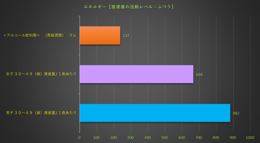 食品成分表の後に、栄養素別及び摂取推進量のグラフ表示しています。