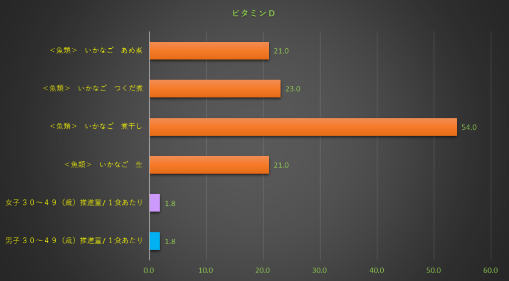 | エネルギー / Kcal | 218 | ビタミンD / μg | 54.0 |
