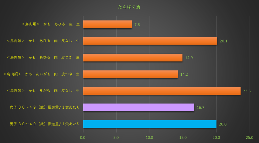 今日は、かも・あひる肉の食品成分表を紹介します