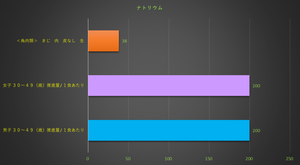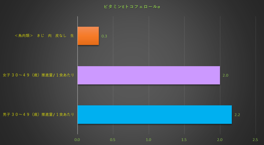 食品成分表の後に、栄養素別及び摂取推進量のグラフ表示しています。