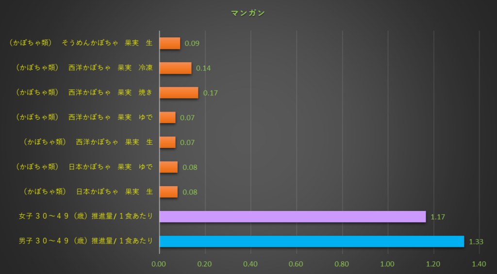 食品成分表の後に、栄養素別及び摂取推進量のグラフ表示しています。